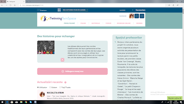 Proiect eTwinning "Des histoires pour échanger"