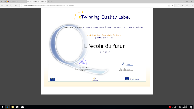al elevilor iar Certificatul de Școală eTwinning fiind